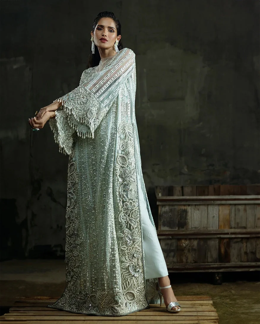 Elevate your festive wardrobe with this exquisite party wear masterpiece from Zilverah — the go-to destination for Pakistani dress in Norway. The Cardamine collection piece is a symphony of elegance, combining masterful embroidery, premium textiles, and refined silhouettes into one unforgettable look. Whether you’re attending a wedding in Oslo, celebrating Eid with family, or gracing a formal event across Scandinavia, this aqua ensemble ensures you arrive in unmatched style.