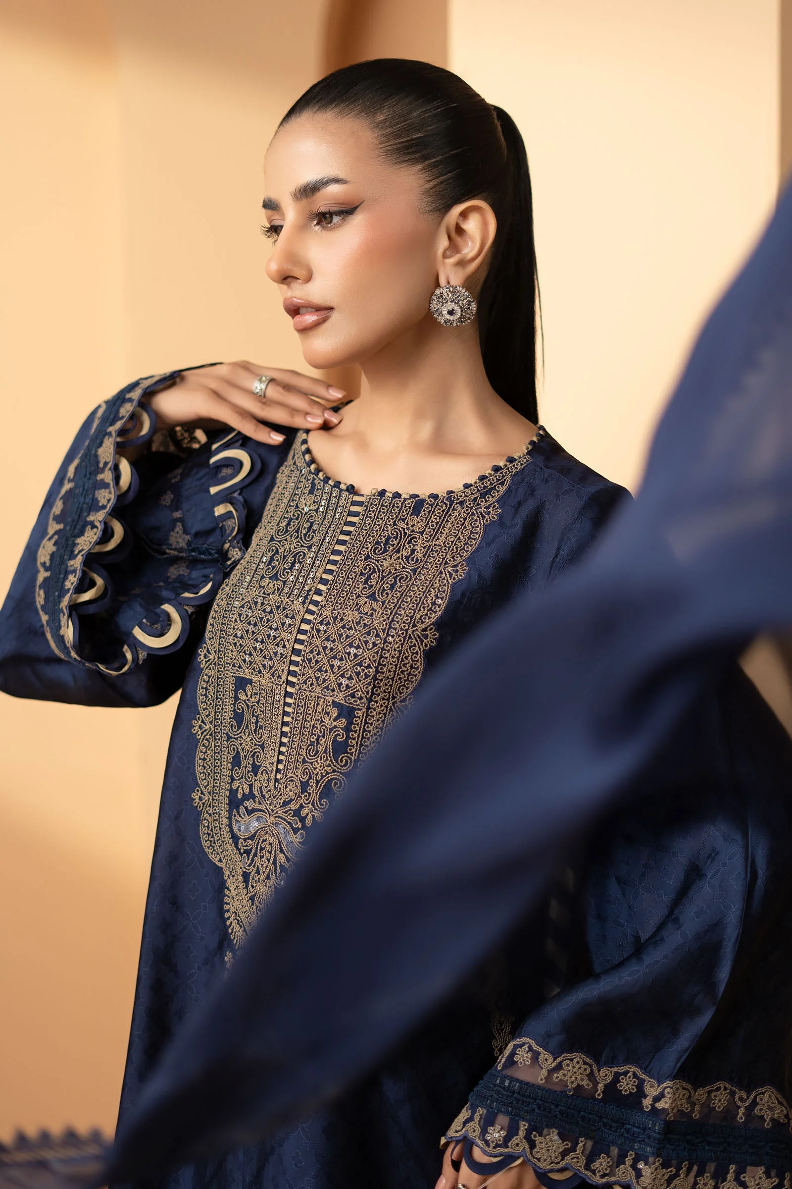 Every element of this suit has been thoughtfully crafted to reflect premium Pakistani couture aesthetics: