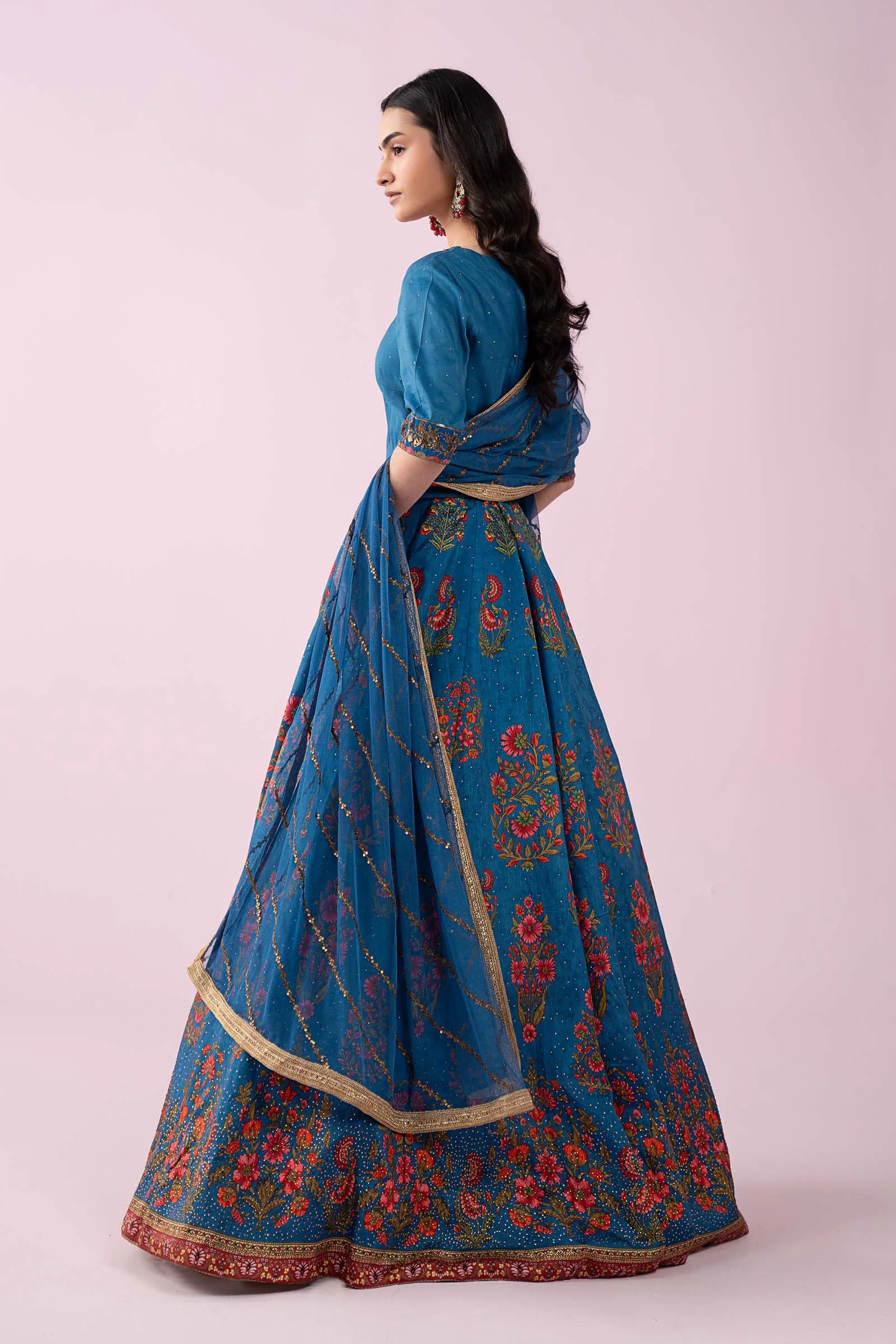 Elevate your next celebration with this stunning 3-piece blue raw silk embroidered lehenga suit from Zilverah — a breathtaking choice for party wear, Eid festivities, and formal evenings. Featuring diamante-embellished blouse detailing, a printed ombre lehenga, and an exquisite sequin-embroidered net dupatta, this ensemble is crafted to make you unforgettable. Now available with free delivery across Norway — order your size today and wear luxury to your next occasion.
