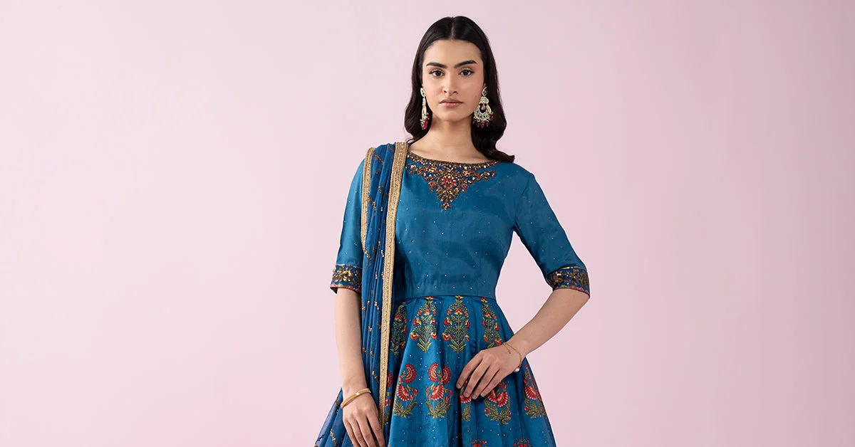 Discover the ultimate in South Asian party wear with this exquisite 3-piece blue raw silk embroidered lehenga suit from Zilverah. Designed for the modern Pakistani and South Asian woman living in Norway, this ensemble brings the grandeur of Lahore’s finest ateliers straight to your doorstep in Oslo, Bergen, Stavanger, or anywhere across Scandinavia. Whether you’re dressing for an Eid celebration, a wedding function, or a glamorous formal evening, this suit is made to impress.