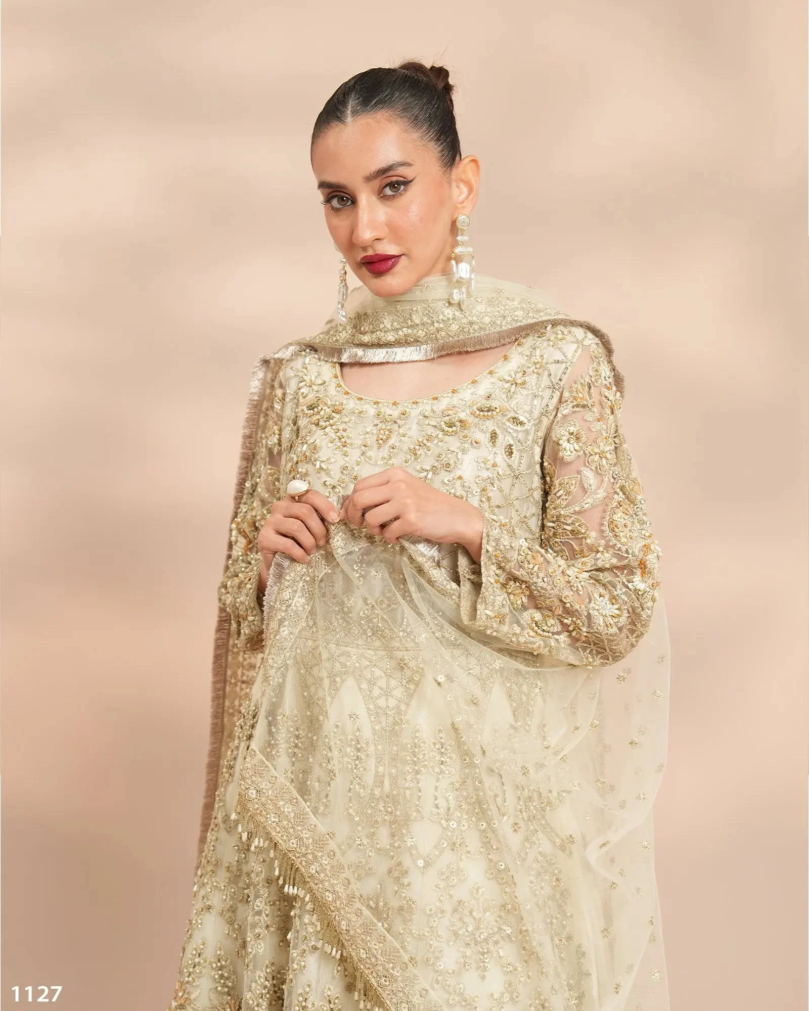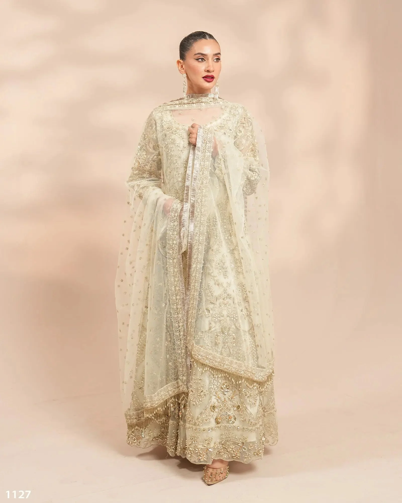 Discover the elegance of South Asian formal wear with this exquisite Zilverah Cream Net Maxi 3-Piece Suit — a breath-taking ensemble that effortlessly blends traditional craftsmanship with contemporary silhouette. Whether you’re attending a wedding in Oslo or celebrating Eid with family in Bergen, this Pakistani maxi suit delivers grace, sophistication, and authentic style for South Asian women living in Norway.