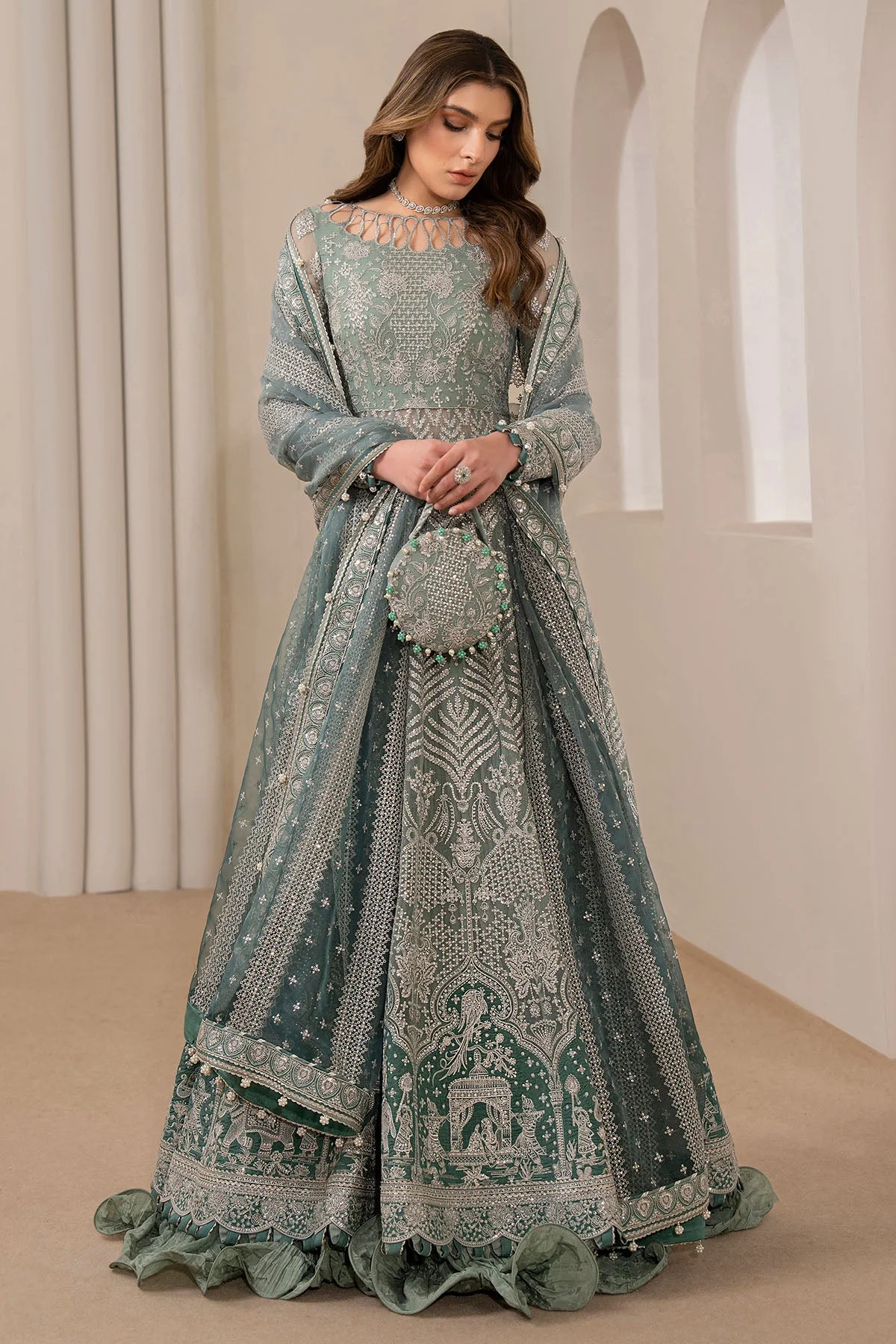 This stunning ensemble showcases the finest traditions of South Asian embroidery work, making it a standout choice for Pakistani formal wear in Scandinavia: