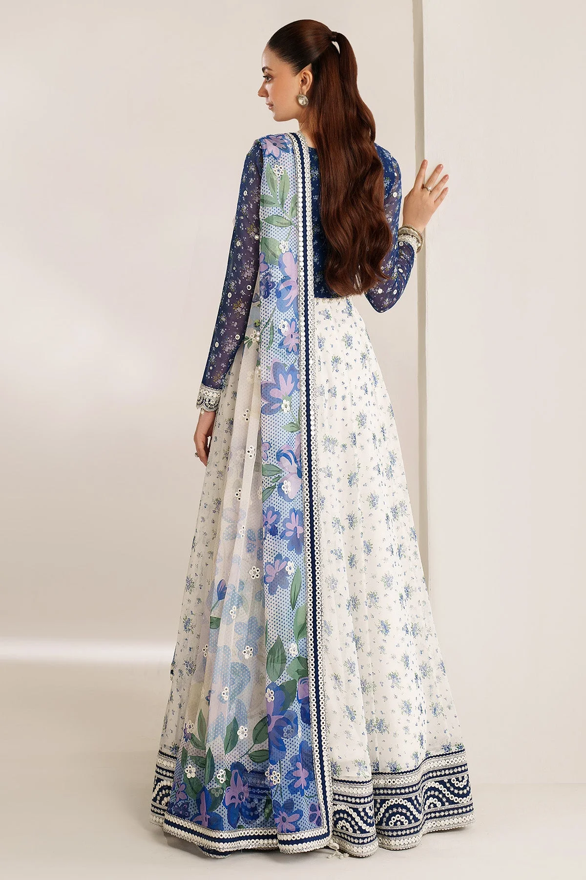 • Dupatta: Digitally printed embroidered chiffon β€” soft and flowing with matching border detailing