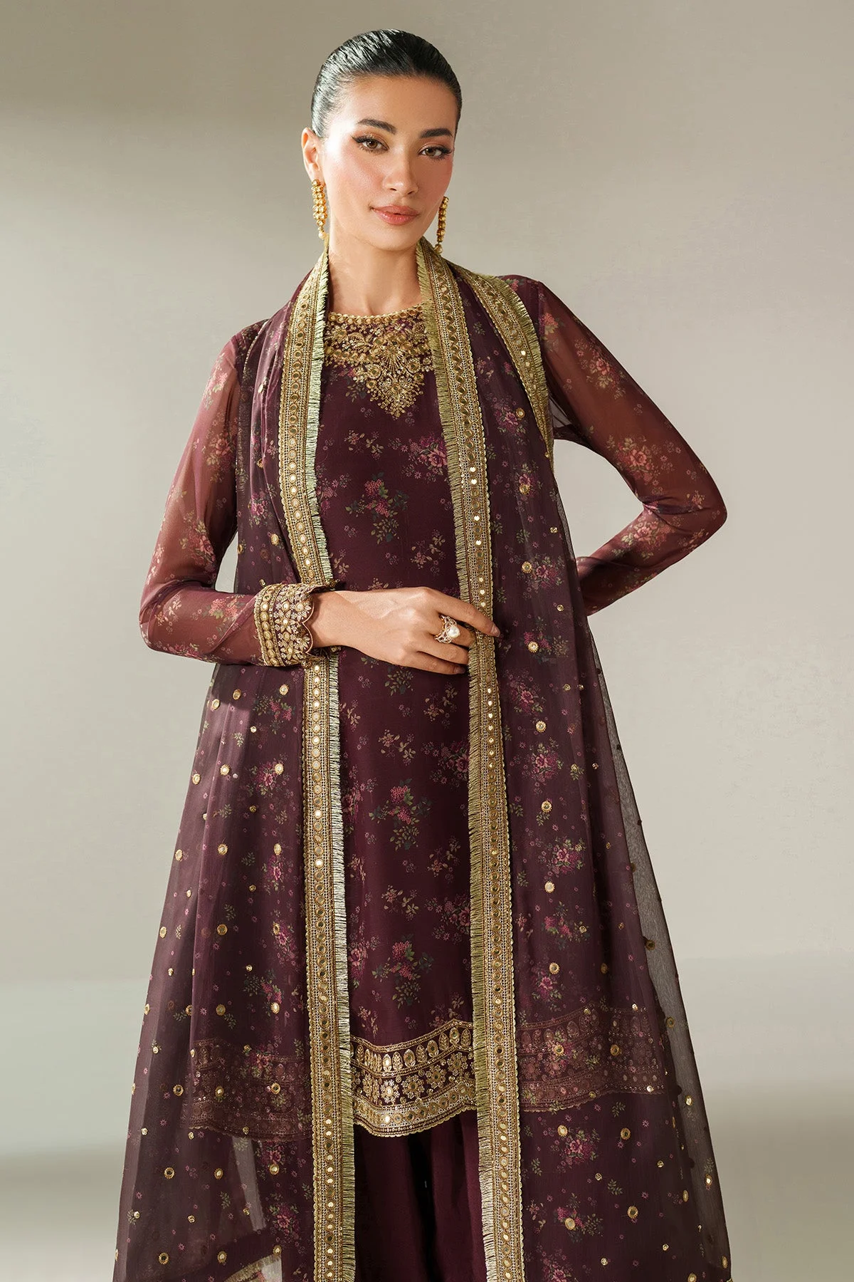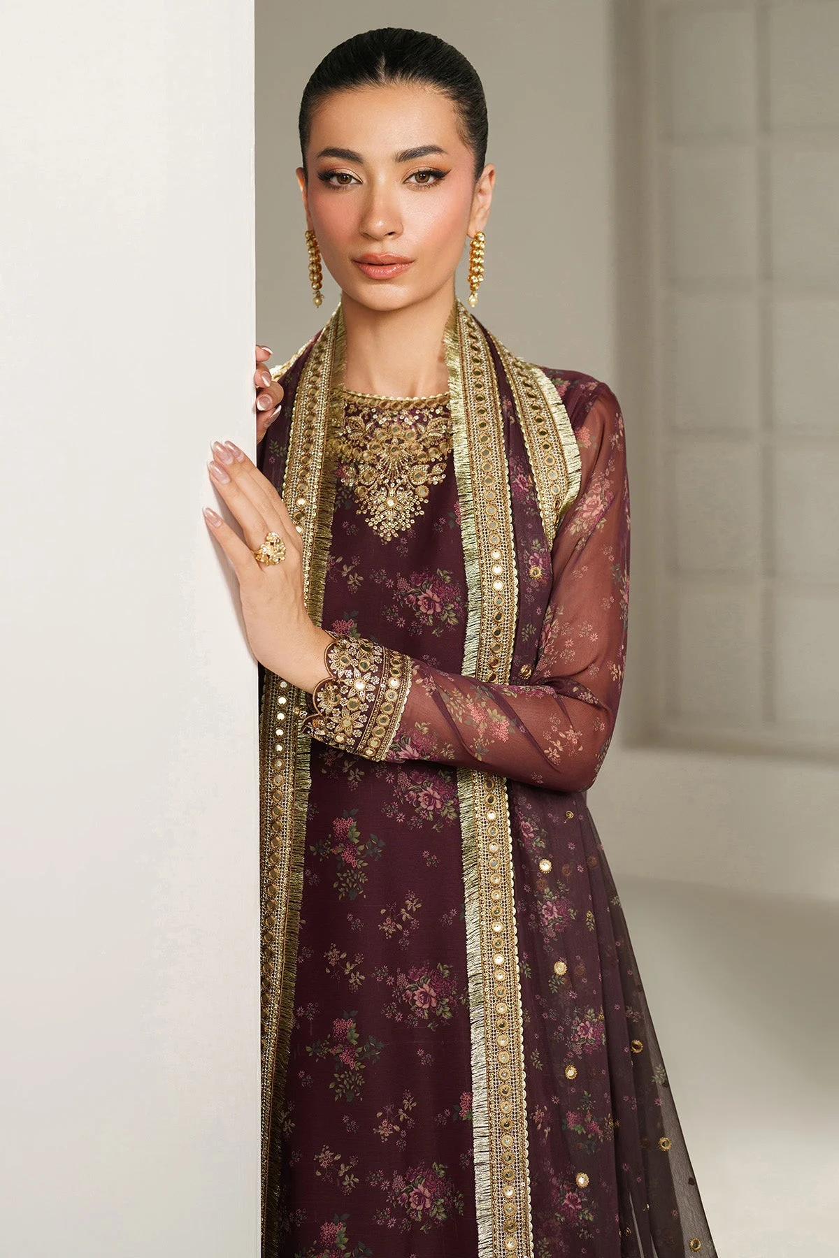 Elevate your festive wardrobe with this exquisite embroidered chiffon party wear ensemble from Zilverah — thoughtfully curated for South Asian women in Norway who seek authentic Pakistani fashion without borders. Whether you are dressing for a wedding, Eid gathering, or a formal dinner, this three-piece suit delivers timeless grace with every wear.