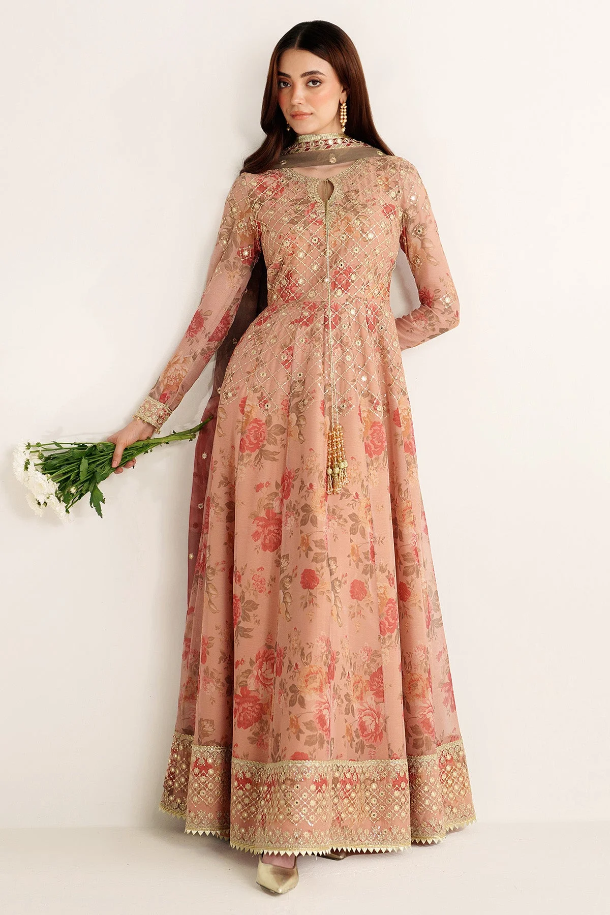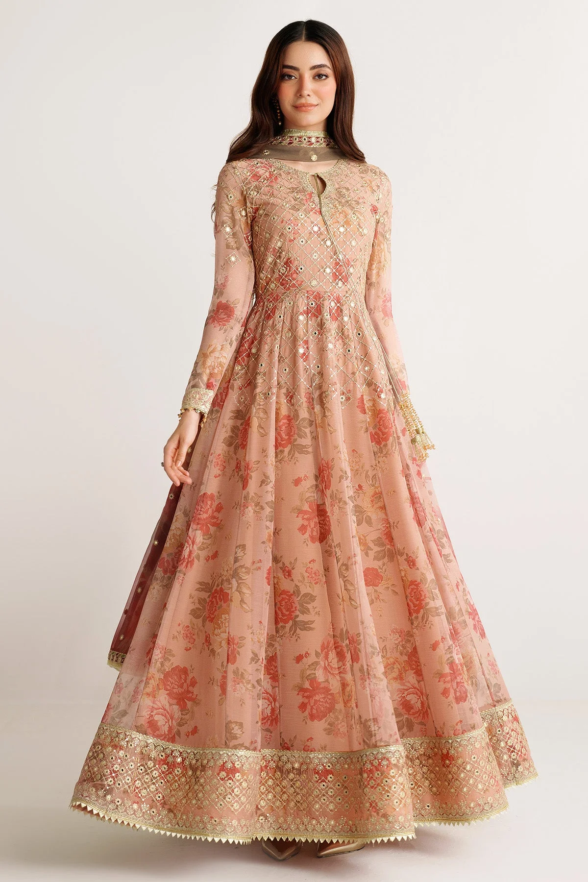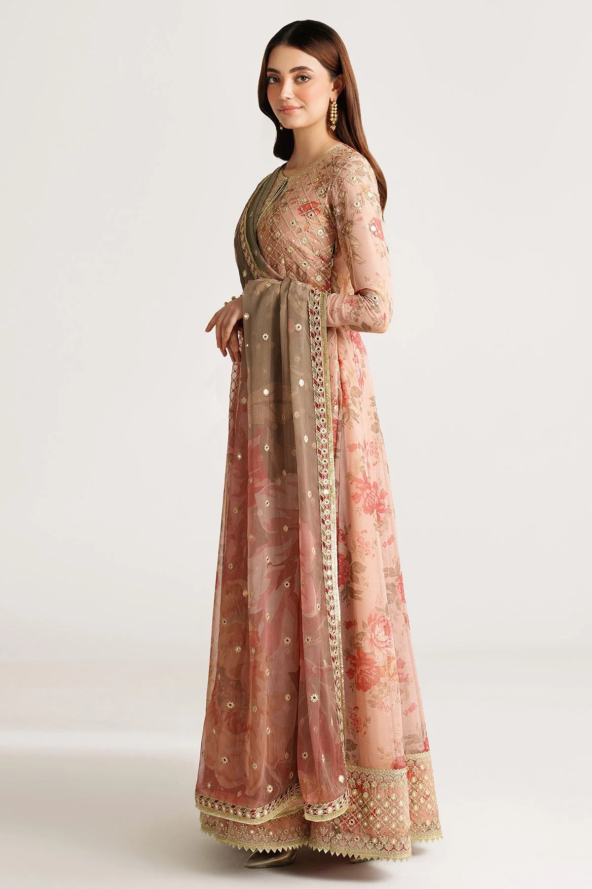 • Matching chiffon dupatta featuring complementary digital prints and embroidered borders