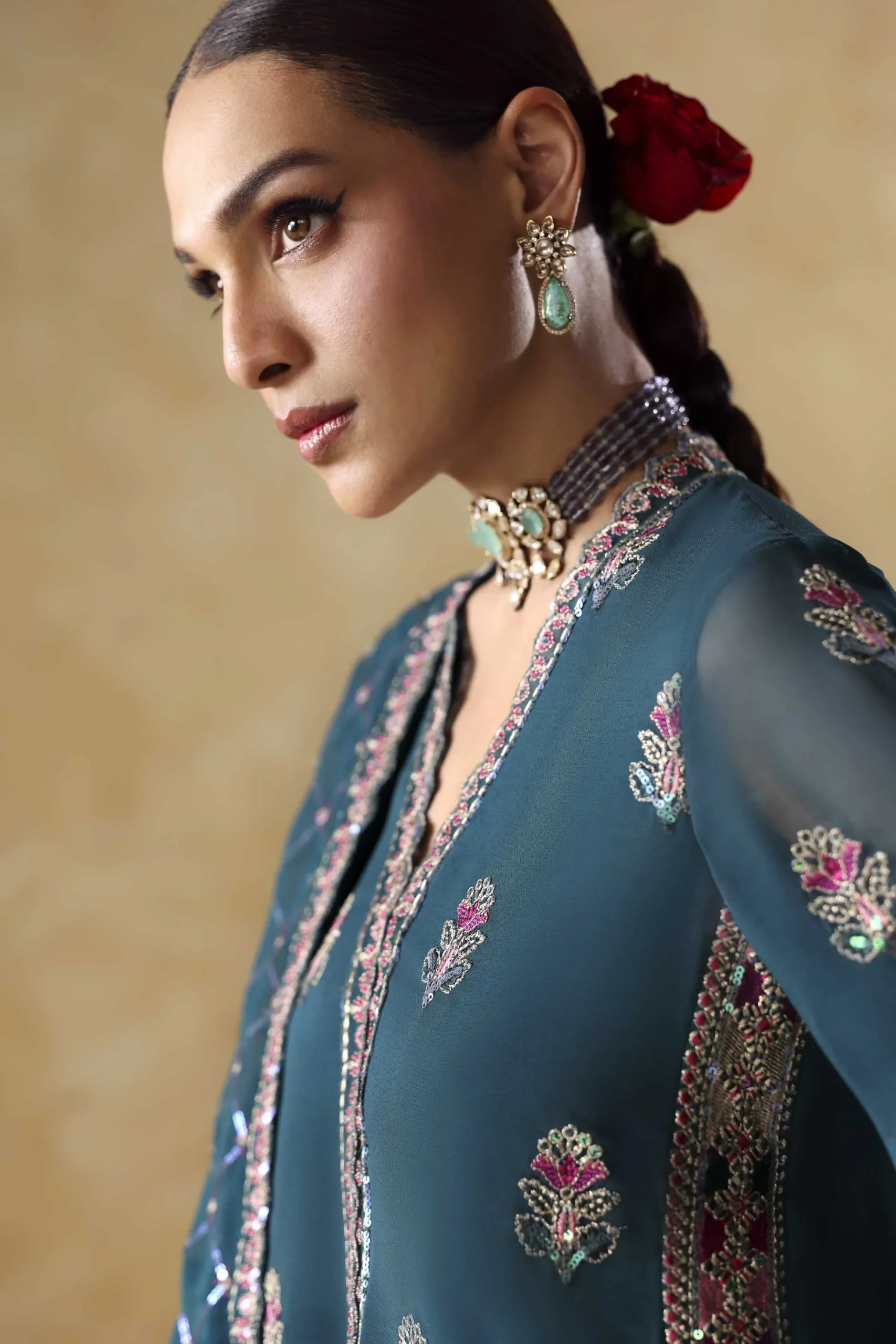 This versatile ensemble is styled for a wide range of South Asian celebrations: