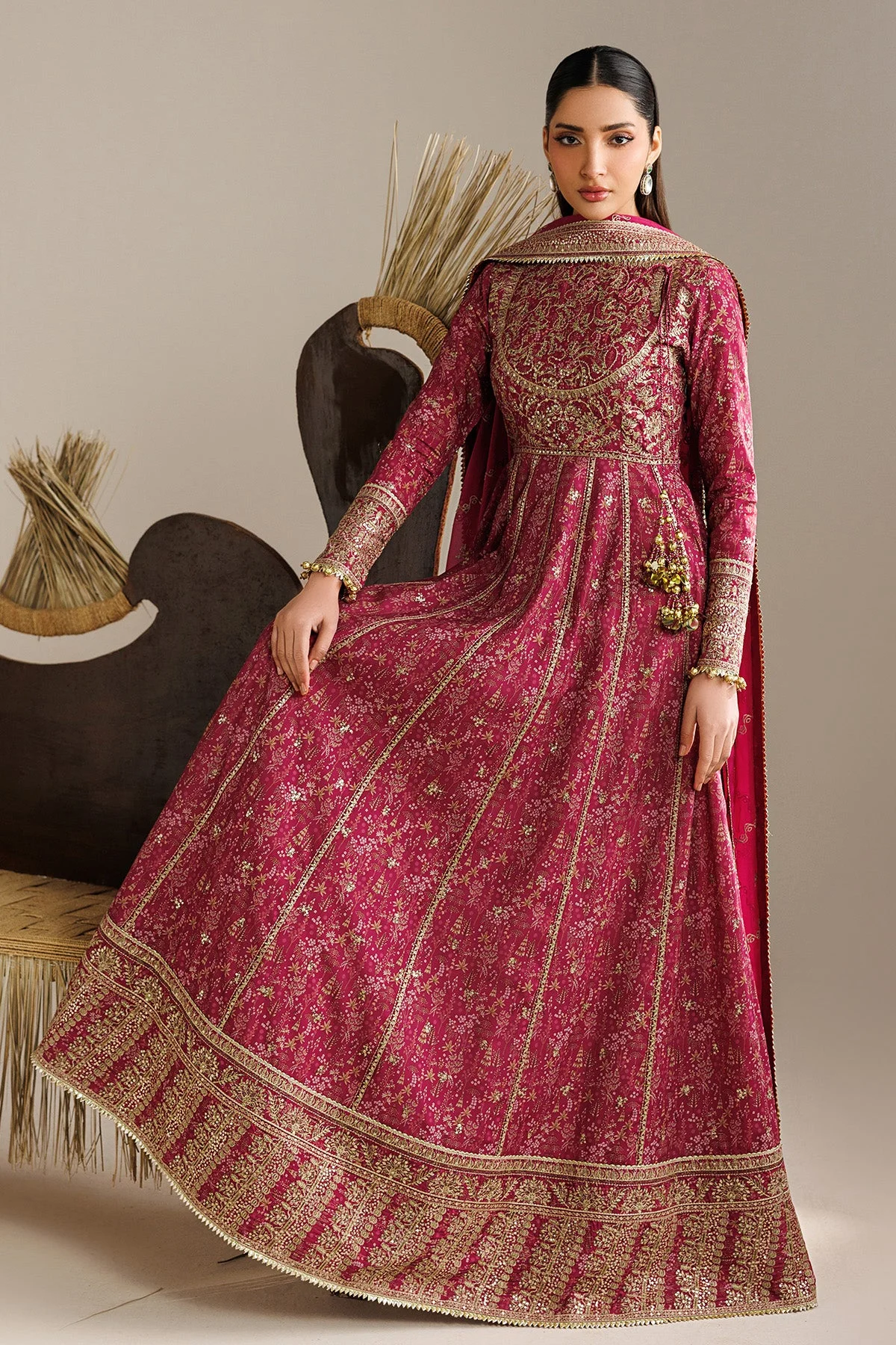 Raw silk is celebrated for its natural sheen, structured drape, and luxurious feel against the skin. Paired with a featherlight organza dupatta, this party wear suit balances richness with comfort — perfect for long celebrations. Sourced from Pakistan’s finest fabric mills, each piece reflects premium quality you can feel and see.