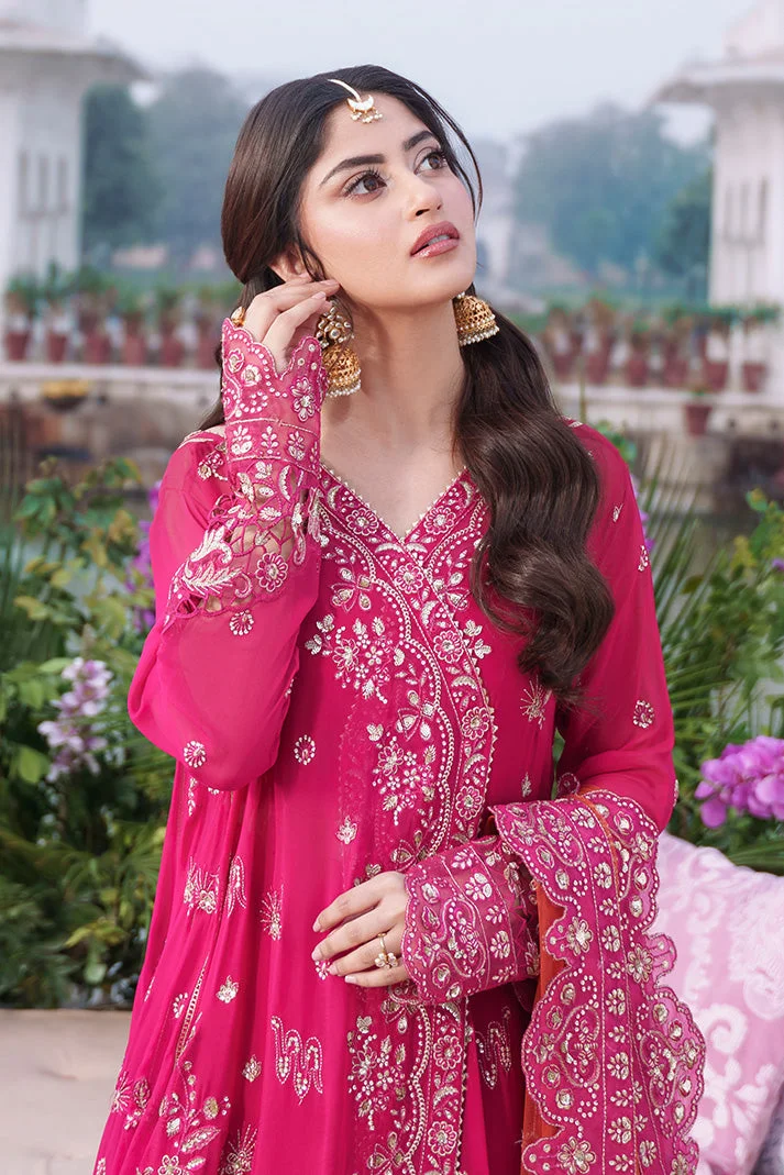 Make a breathtaking statement at your next celebration with this Zilverah hot pink embroidered chiffon 3-piece formal wear suit — a luxurious blend of embroidered chiffon, embroidered net, raw silk, and organza crafted for weddings, Eid, and festive occasions. The vibrant hot pink hue and intricate embroidery make it an unforgettable choice for South Asian women who refuse to blend in. Order today and enjoy free delivery across Norway — authentic Pakistani luxury, right to your door.
