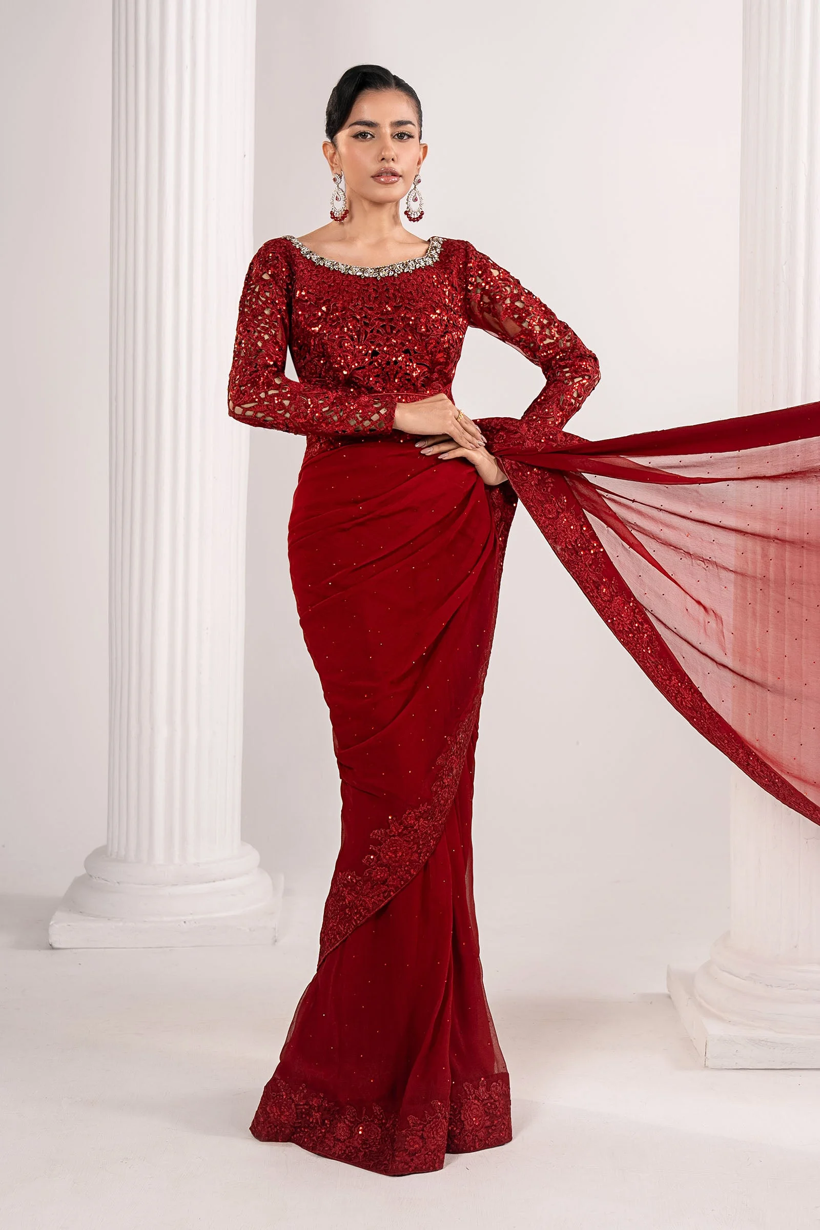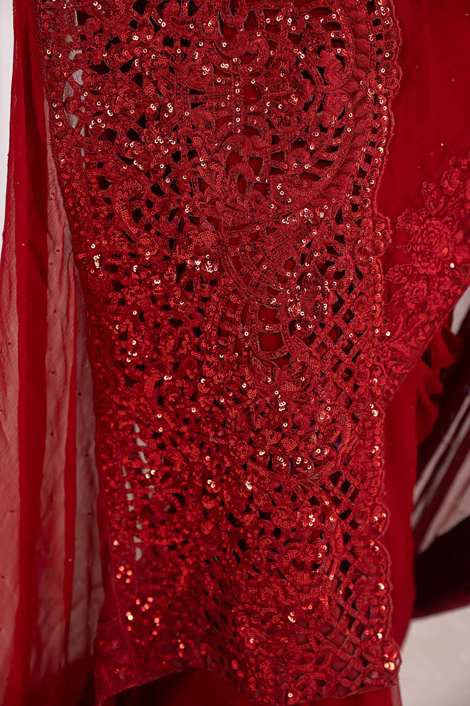 Elevate your festive wardrobe with the Zilverah Red Embroidered Chiffon Saree — a masterfully crafted party wear saree that blends timeless South Asian elegance with contemporary luxury. Whether you’re dressing for a wedding reception, Eid gathering, or a formal evening dinner, this stunning red saree delivers grace and glamour in every drape. Now available to buy online in Norway with free delivery, this is the Pakistani dress Norway-based fashion lovers have been searching for.