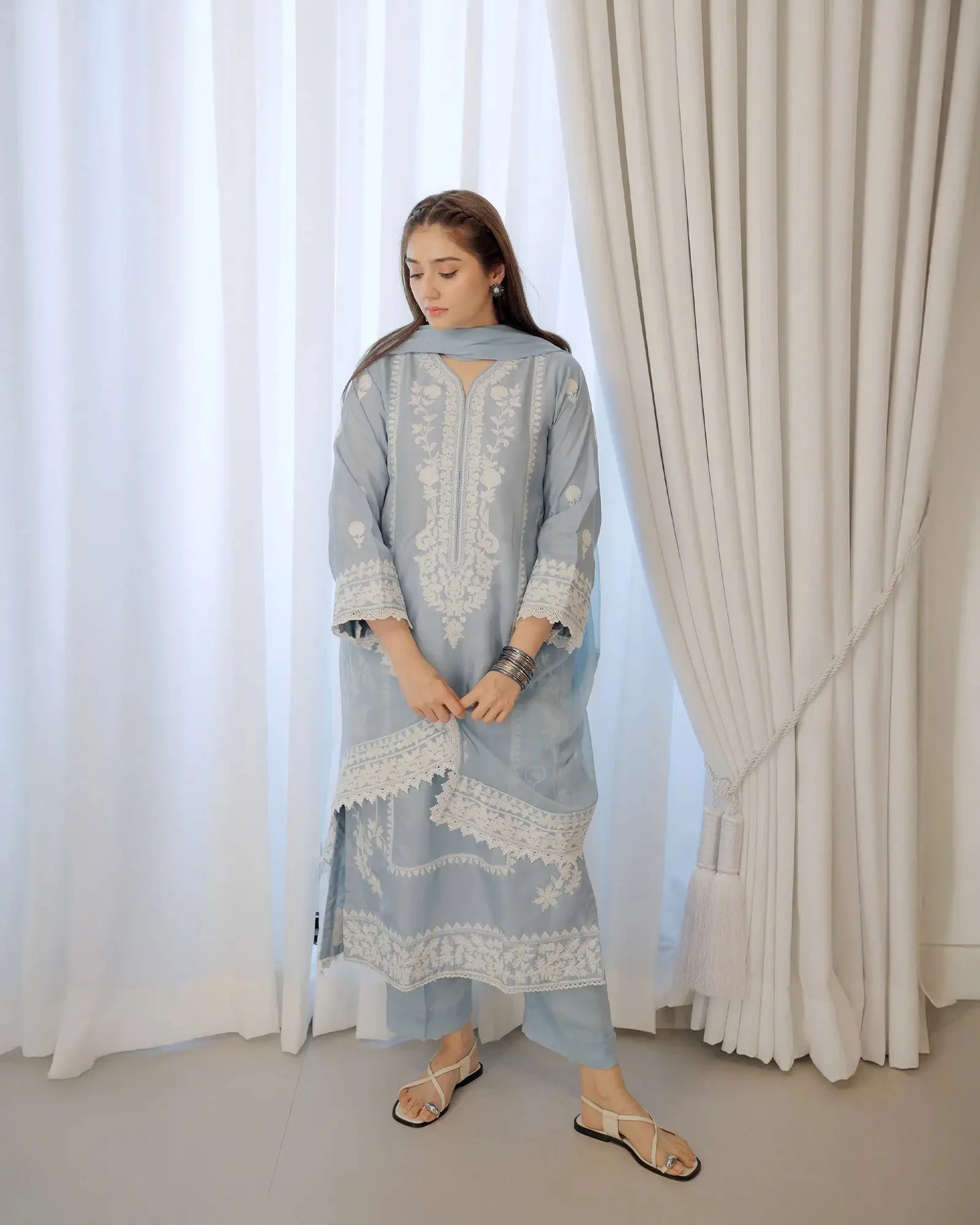 • Silhouette: Classic yet contemporary Pakistani shalwar kameez cut
