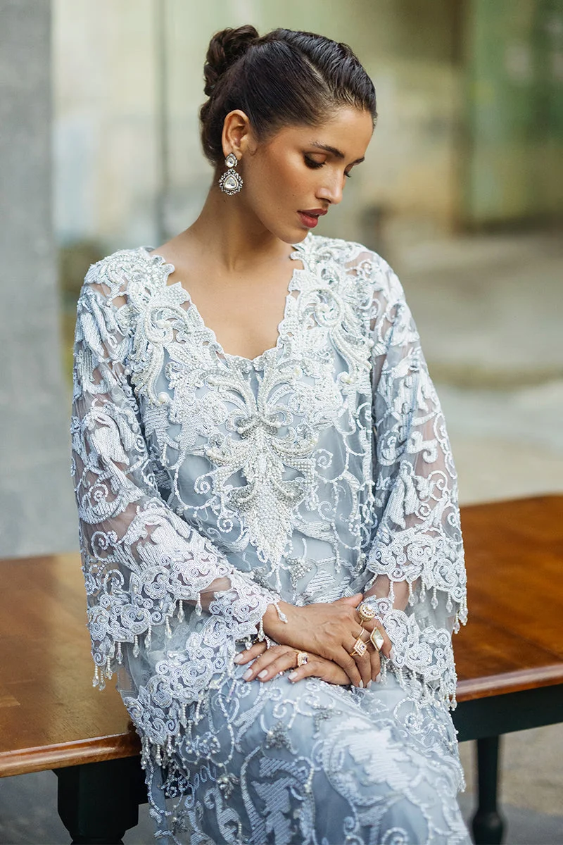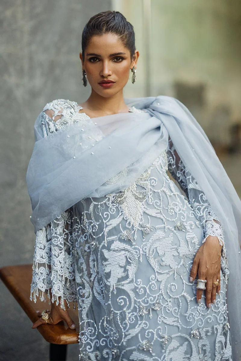 Zilverah Iris is a breathtaking steel grey luxury formal ensemble crafted from intricately embroidered net, paired with sumptuous raw silk trousers and a delicate organza dupatta — the ultimate party wear statement for the season. Designed for South Asian women who refuse to compromise on elegance, this three-piece masterpiece is perfect for weddings, Eid celebrations, and formal gatherings. Order now and enjoy free delivery across Norway straight to your door.