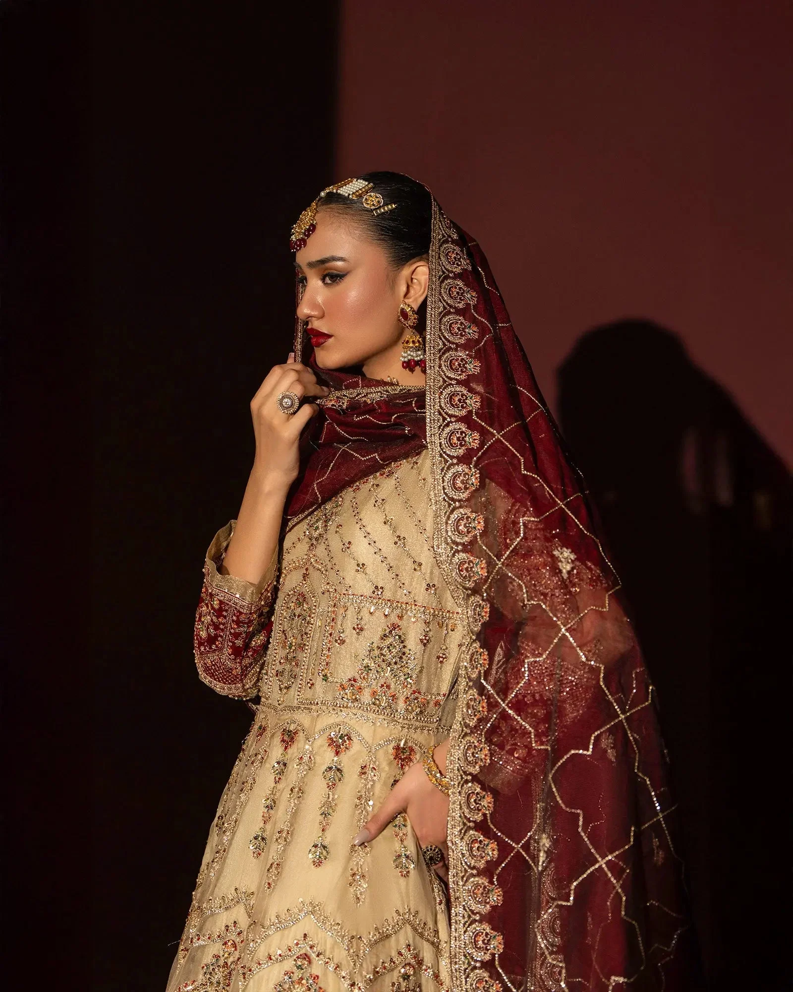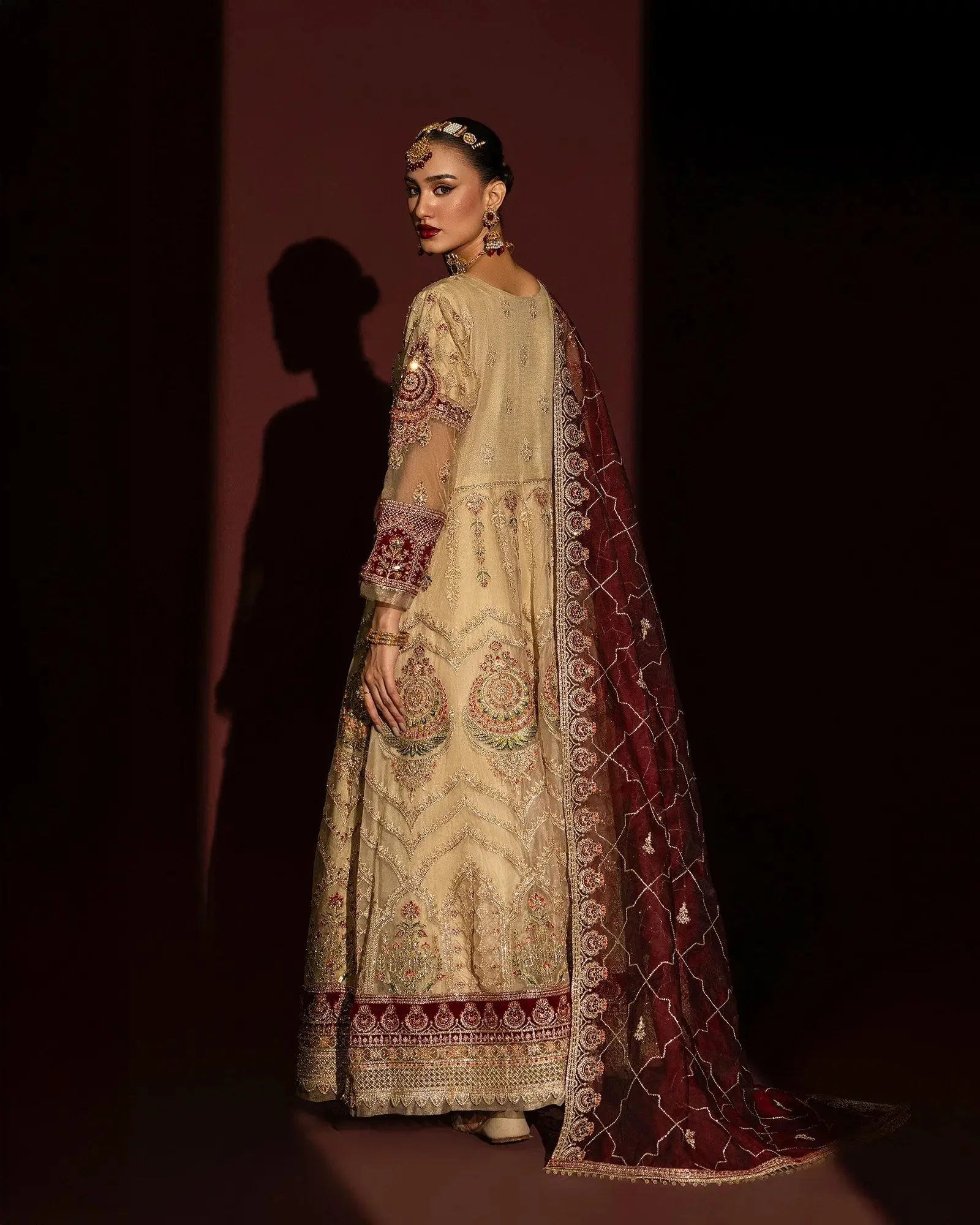 The combination of tissue and organza net creates a softly luminous look that photographs beautifully and feels comfortable throughout long events — a must for Pakistani formal wear worn in Norway’s cooler climate alongside a warm wrap or shawl.